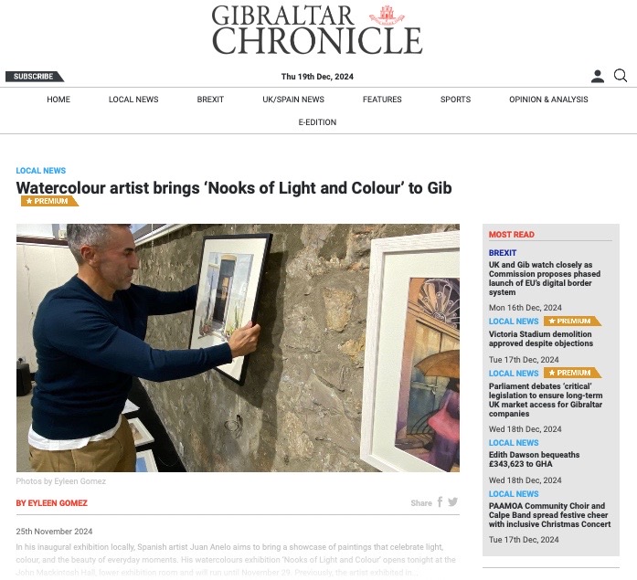 After the wonderful experience of exhibiting my watercolors in my hometown of San Fernando (Cádiz), I had the unexpected opportunity to take the very same collection a bit farther—across the border into Gibraltar. Many of our friends and family in Gibraltar couldn’t make the trip to Cádiz to see the show, and they often asked if I would consider exhibiting locally. The idea took root quickly, and before I knew it, everything was in motion.