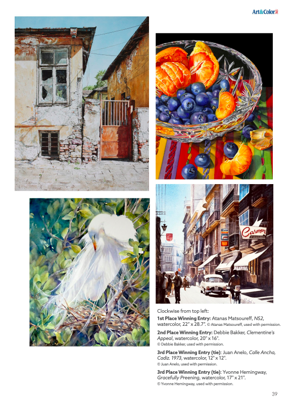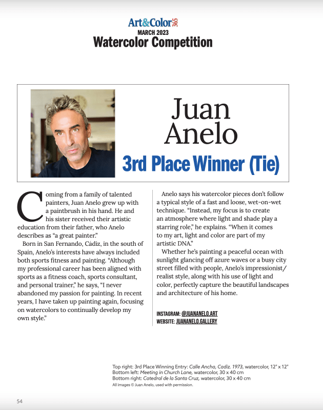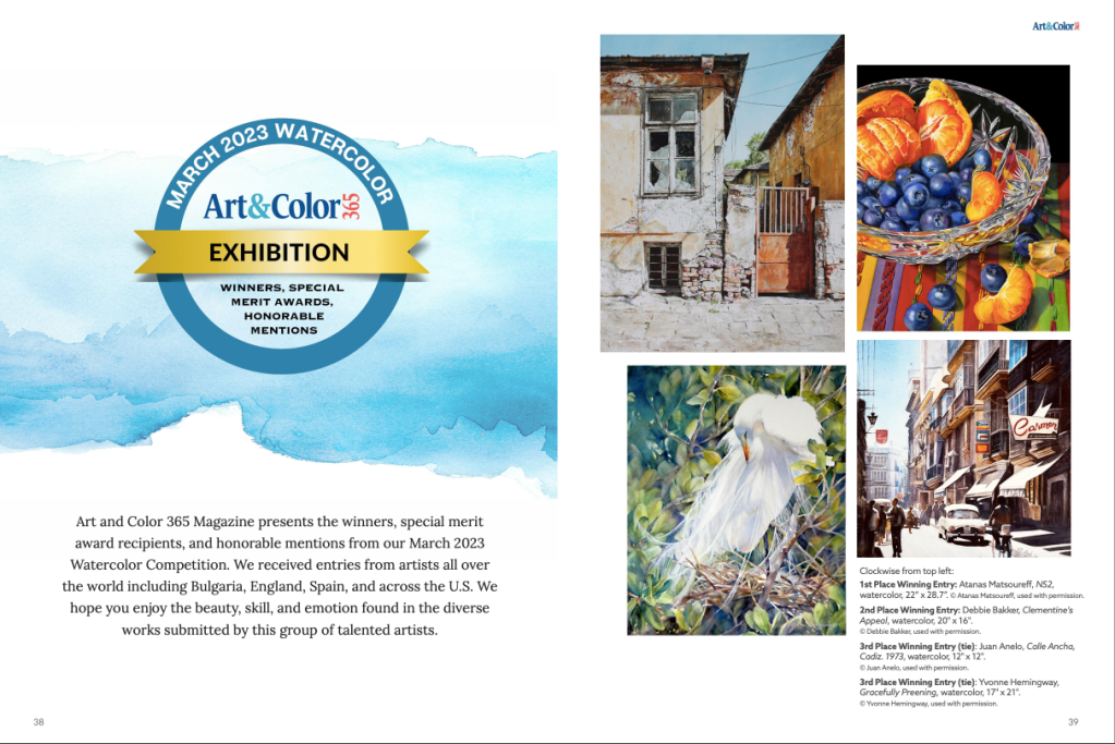 To my surprise, a few weeks later, I received news that I had won 3rd place in their March 2023 Watercolor Competition. Not only that, but they also published a feature on my work, including a full page introducing my artistic style and background.